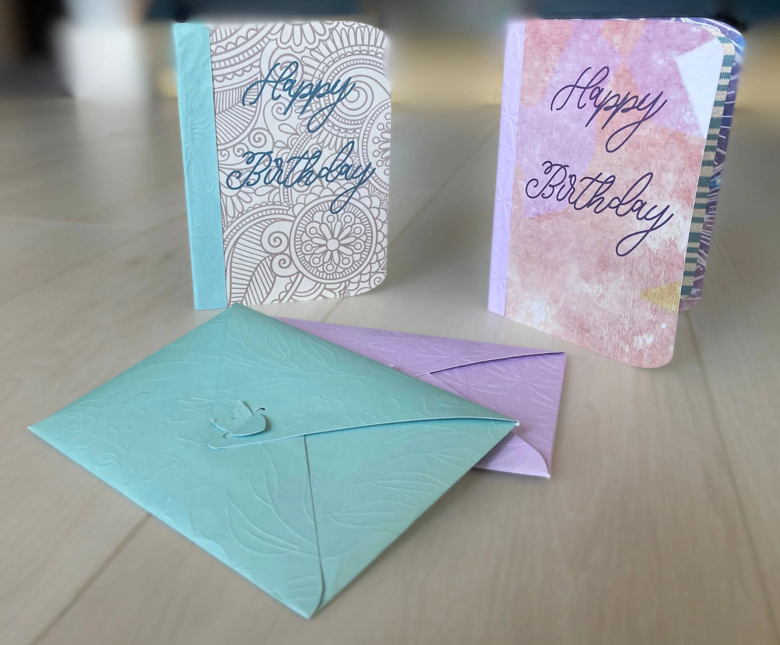 Knotted Mussel Creations Adhesive Fabric (removable, reusable, wall-friendly) Miniature cards and envelopes Reusable birthday cards and envelopes
